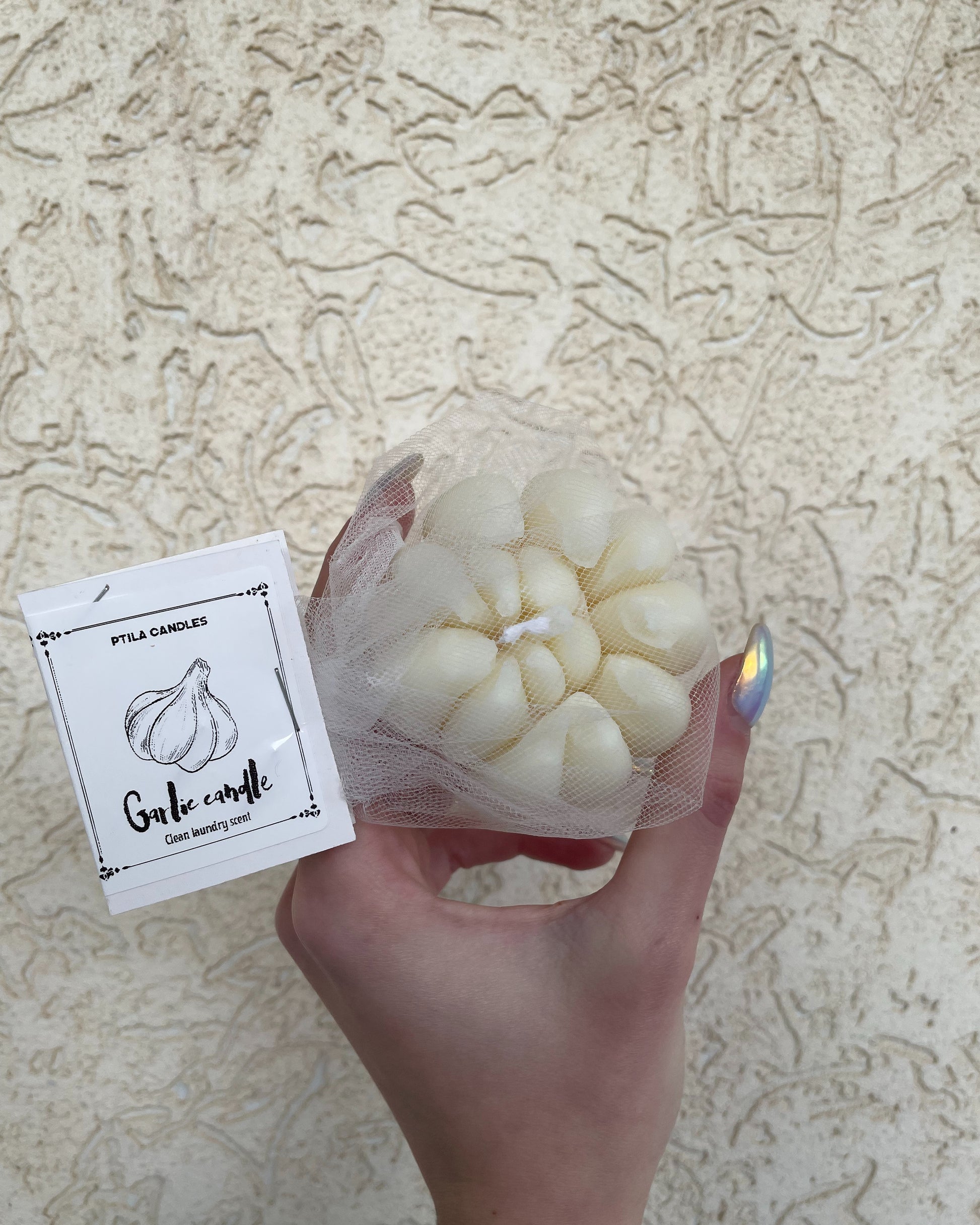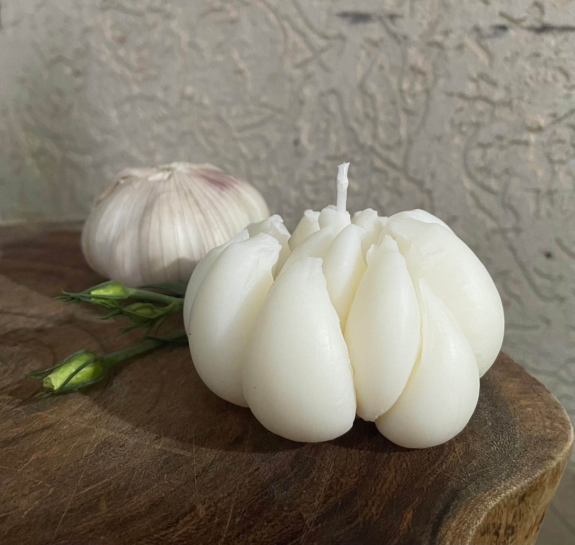 נר בצורת ראש שום ריאליסטי גדול יחסית