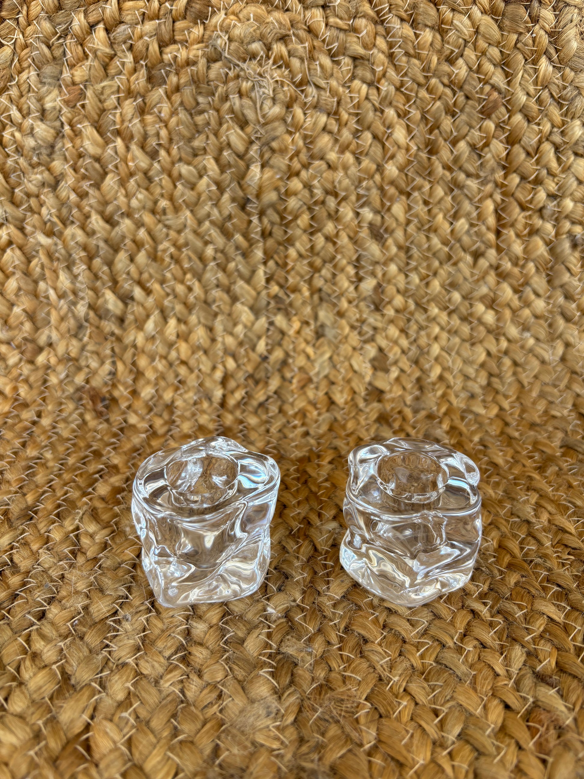 פמוטים מודרניים מזכוכית עבה בצורה לא רגילה שמזכירה קוביות קרח
