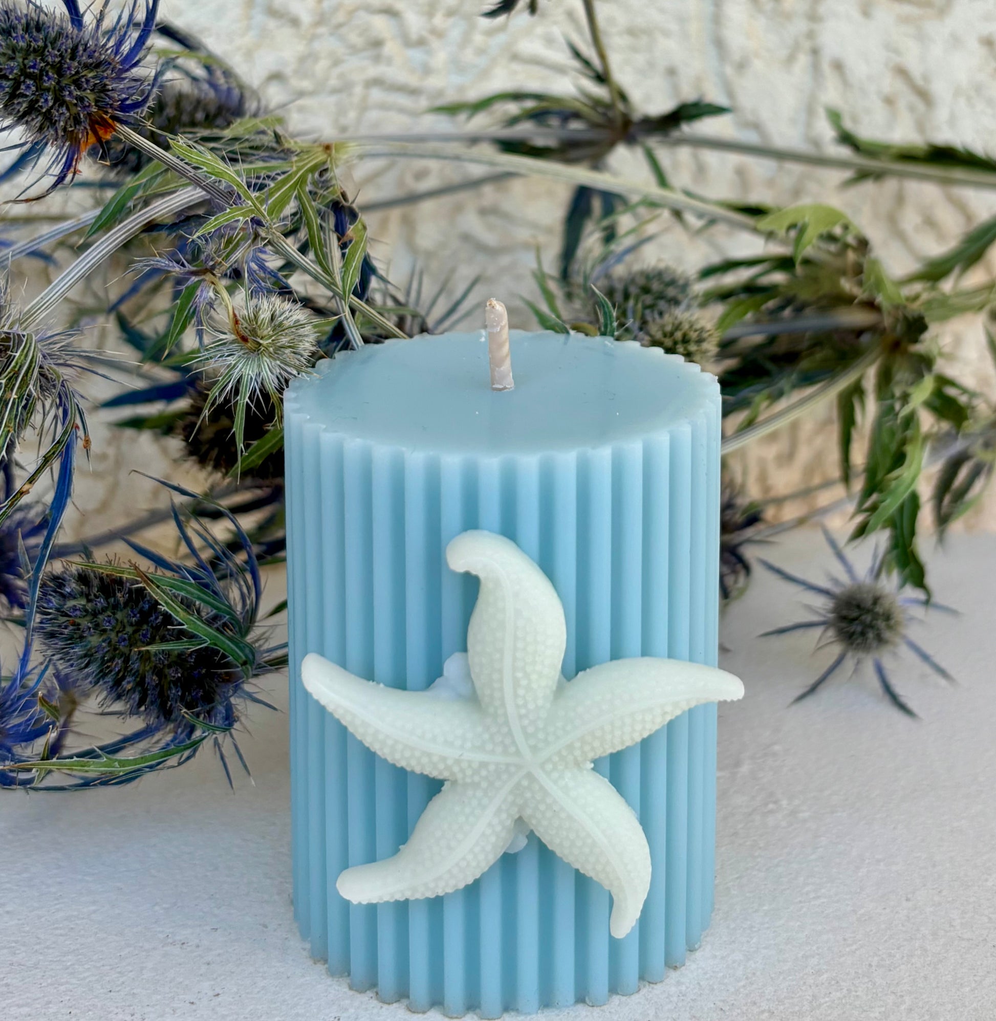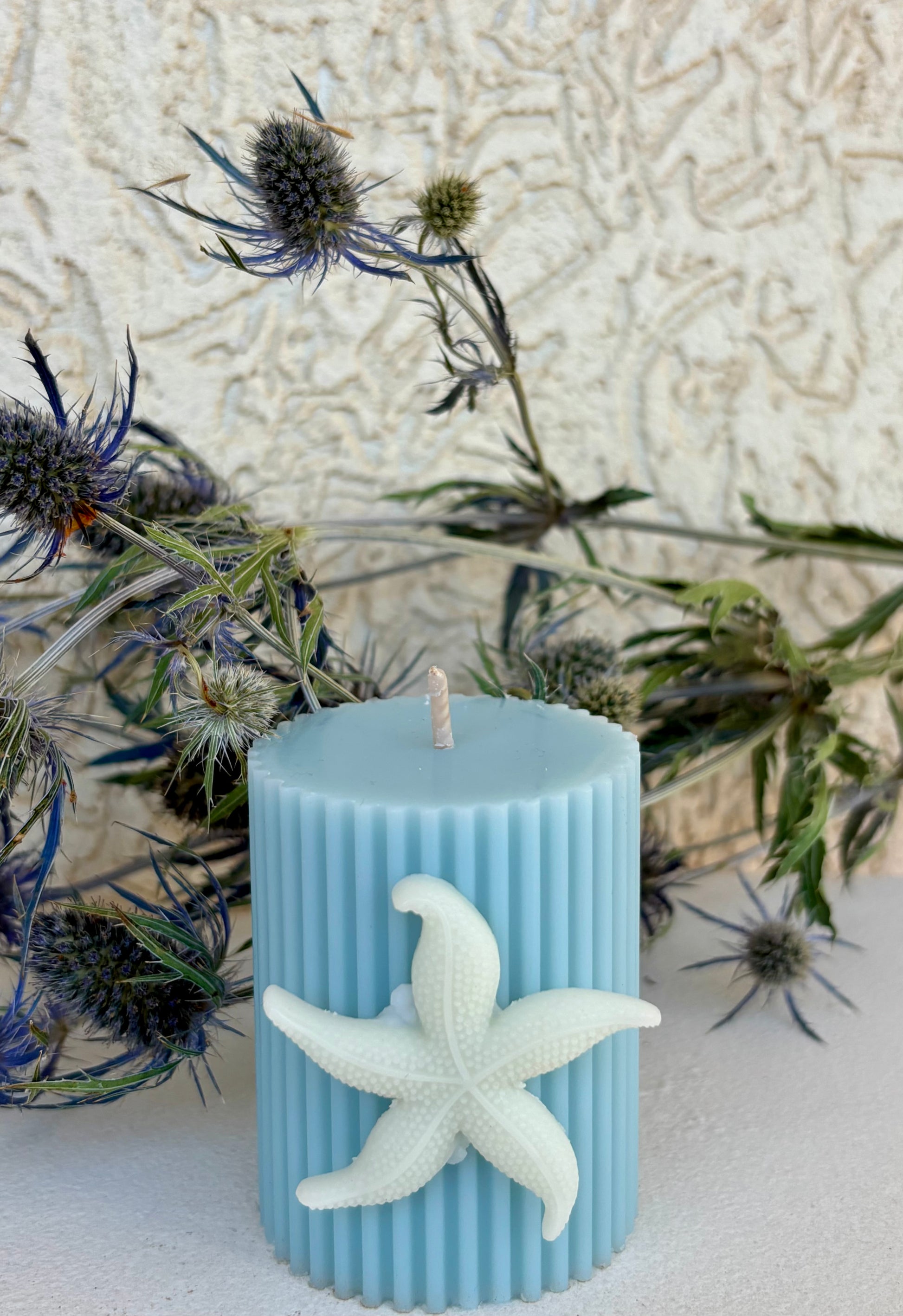 נר עמוד פסים בינוני בשילוב אלמנט כוכב-ים קיצי 🪸